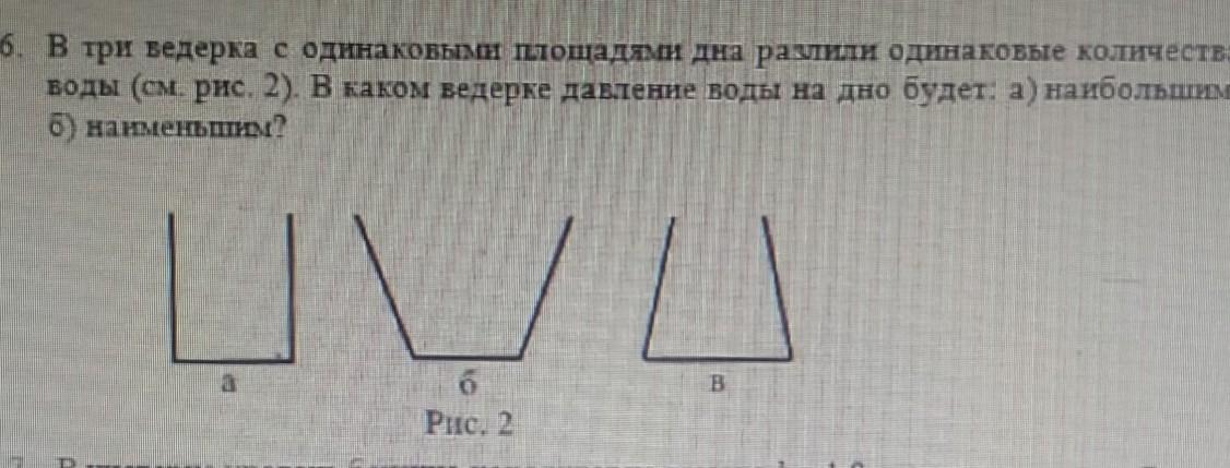 рис. 2). В каком ведерке давление воды на дно будет а)наибольшим?