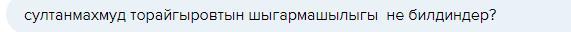 Сұлтанмахмұт Торайғыровтың шығармашылығы өте терең мағынада және өте керемет.Сұлтанмахмұт Торайғыров көрнекті ақын,жастар арасындағы ең үздік ақын