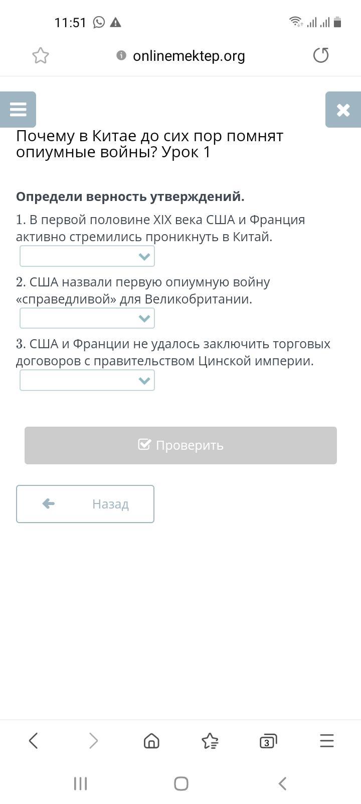 Определи верность утверждений. 1. В первой половине XIX века США и Франция активно стремились проникнуть в Китай. 2. США назвали первую опиумную войну «справедливой» для Великобритании. 3. США и Франции не удалось заключить торговых договоров с правительством Цинской империи.