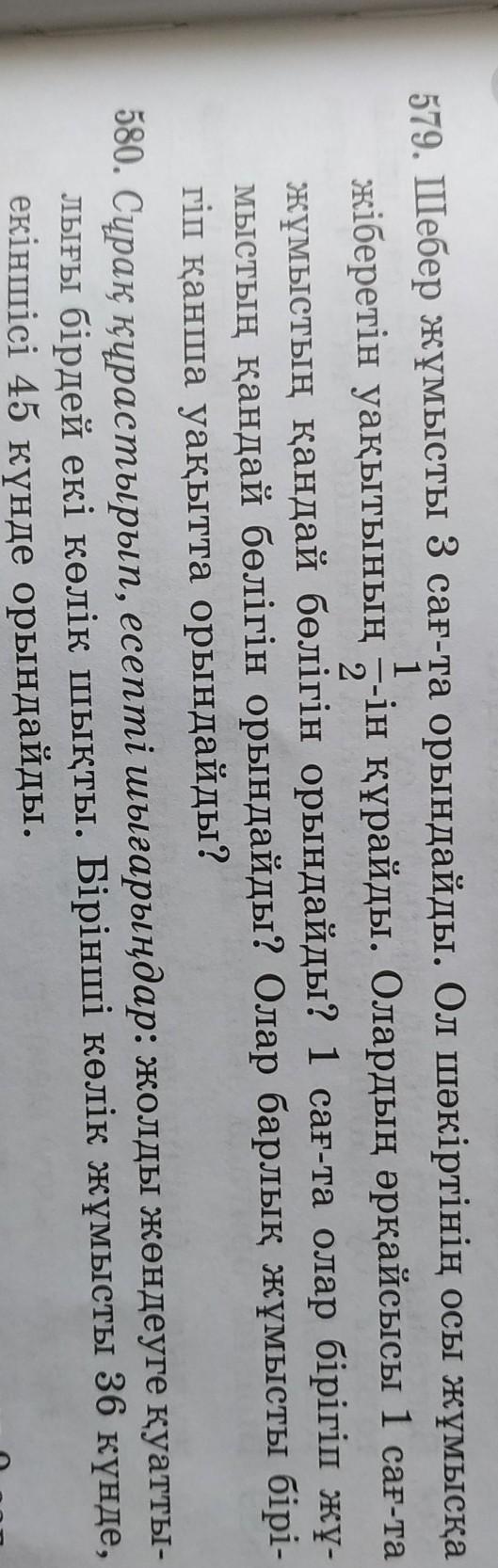 Ш:1)3*1/2=6 сағ 2)1:3=1/3 1:6=1/6 1/3+1/6=3/6=1/2 жұмыс 3)1:1/2=2сағ