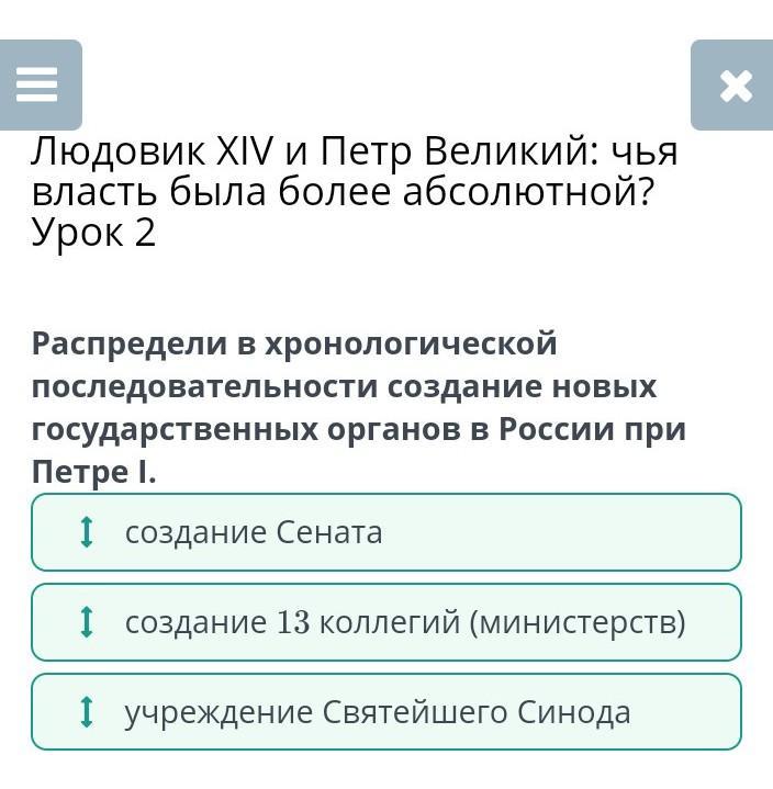 Распредели в хронологической последовательности создание новых государственных органов в России при Петре I.
