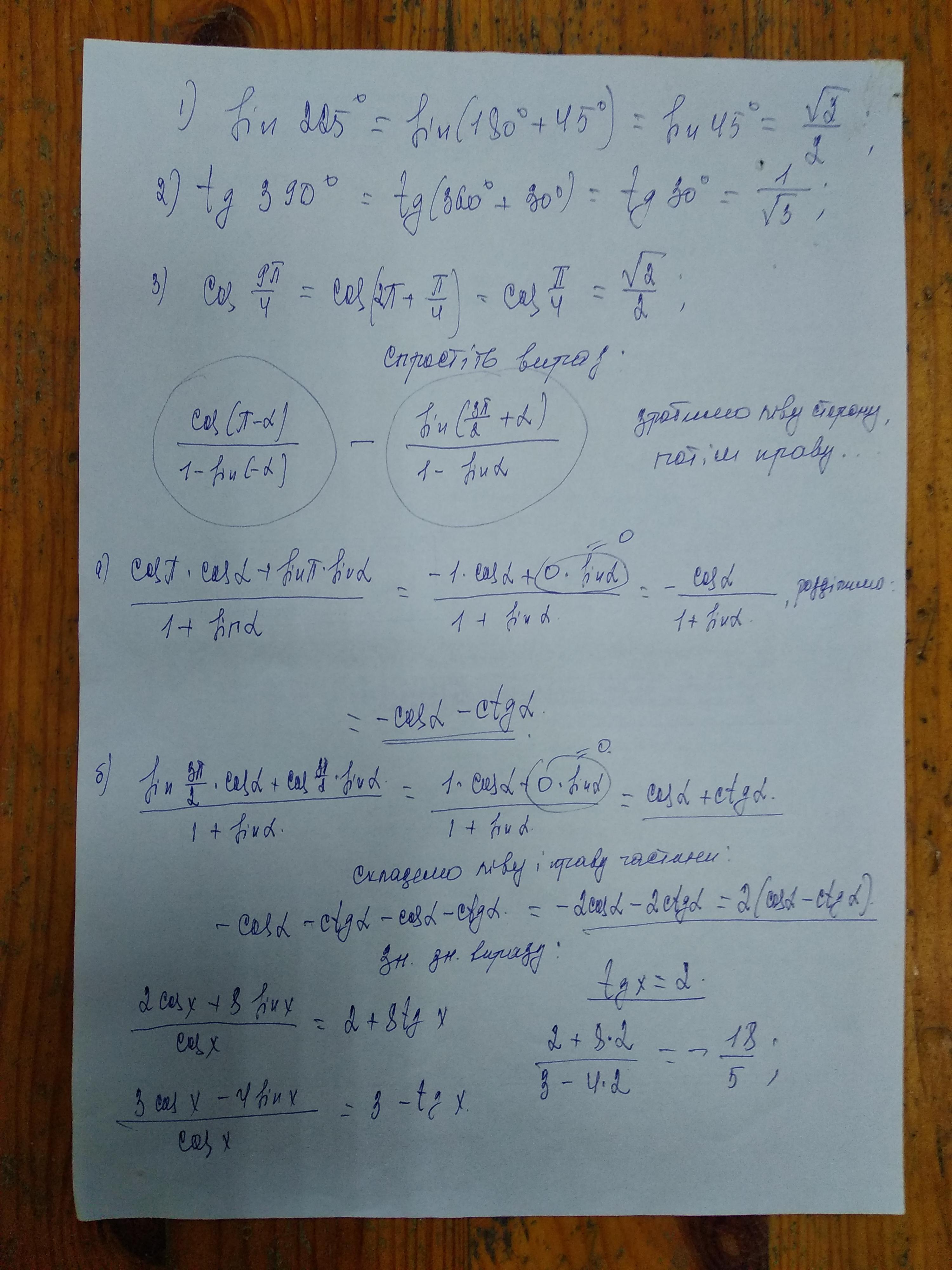 зверни увагу, в 1 прикладі кут 180+ і попадає в 3 чверть, а синус тут з мінусом, тому відповідь -корінь з 2/2