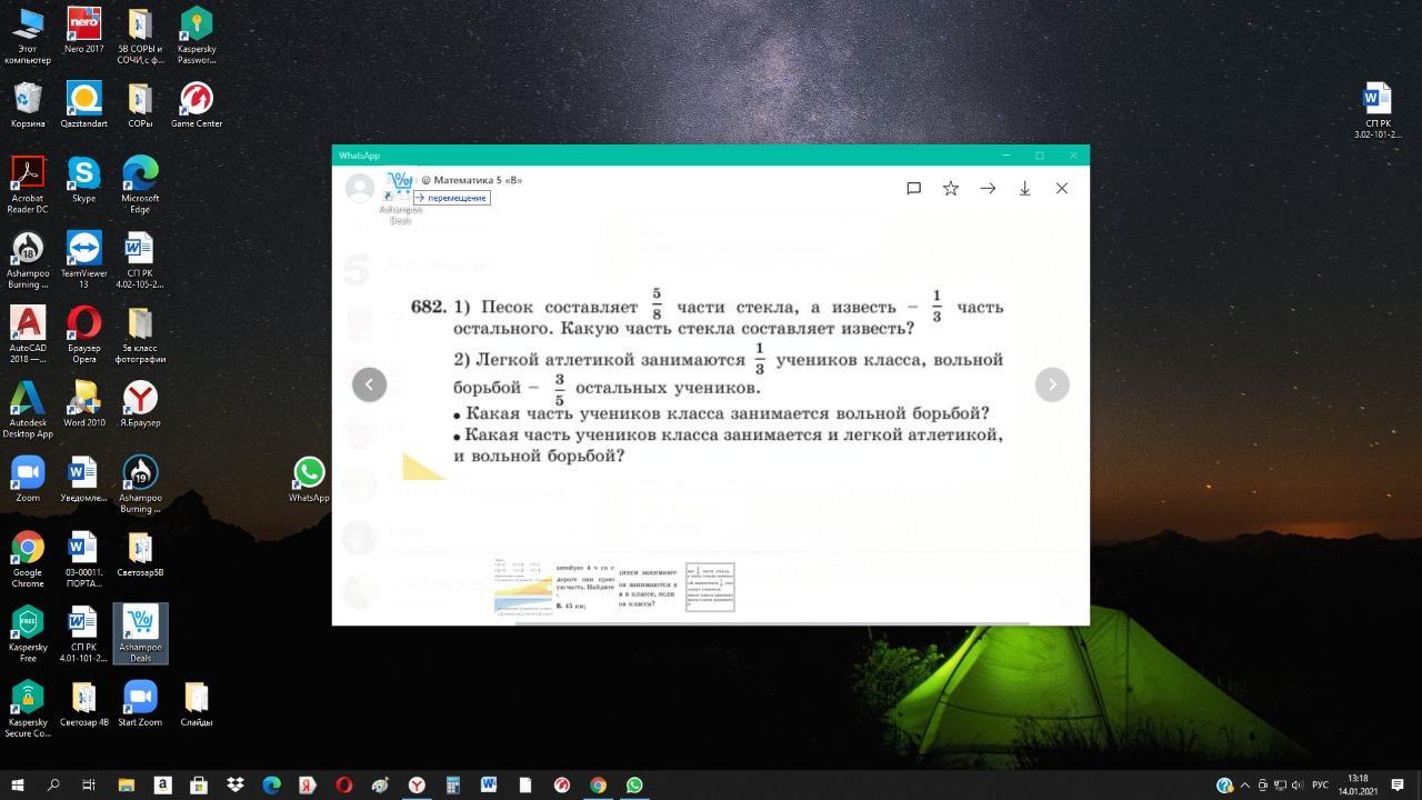 1) 1 - 5/8 = 3/8 - стекло без песка; 2) 3/8 * 1/3 = 1/8 часть стекла составляет известь
