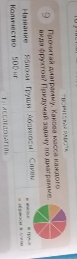 яблоки-500кг=1/2 груши-1/4 абрикосы-1/8 сливы-1/8 1)500:2=250кг груши 2)250:2=125кг абрикосы или сливы (они одинокавого количества)