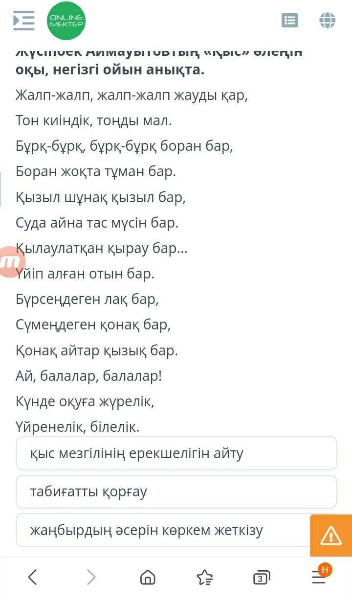 Қыс мезгілінің ерекшелігін айту сияқты.Кажетсяпервый ответ