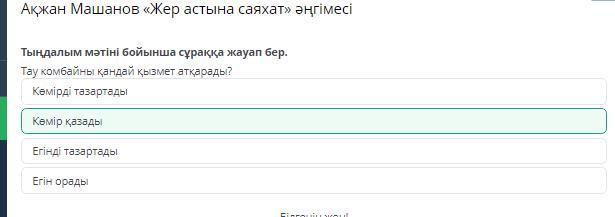 Тыңдалым мәтіні бойынша сұраққа жауап бер.