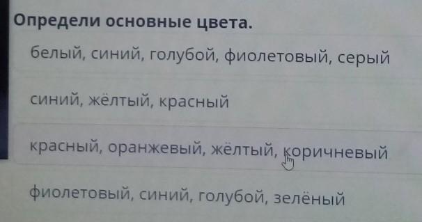 Синий, желтый и красный - это основные цвета, так как остальные цвета можно получить при их смешивании!
