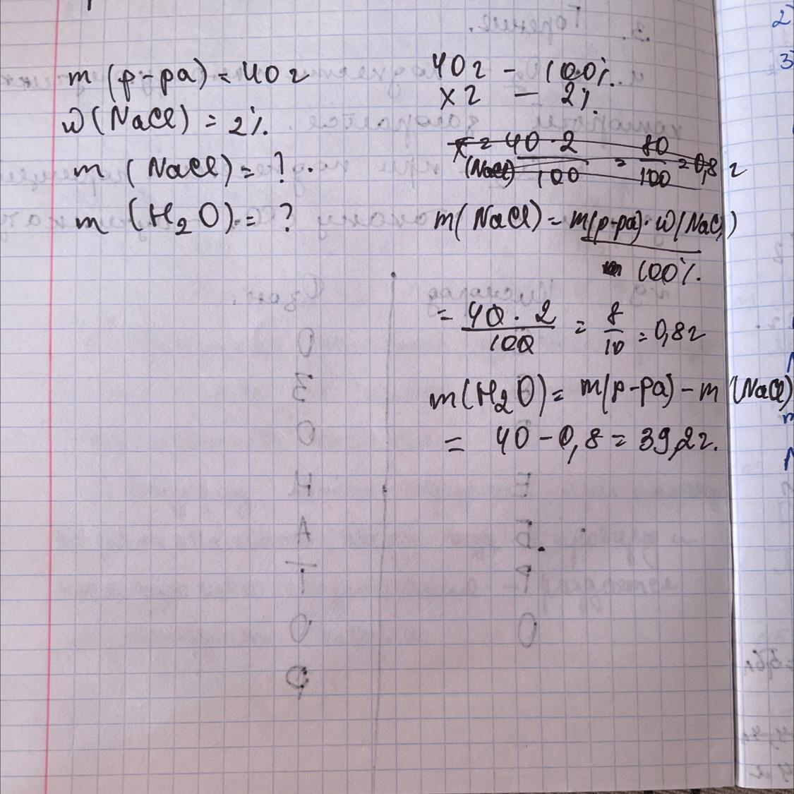 m в-ва (NaCl) = m р-ра × ω = 40г × 0,02 =0,8г