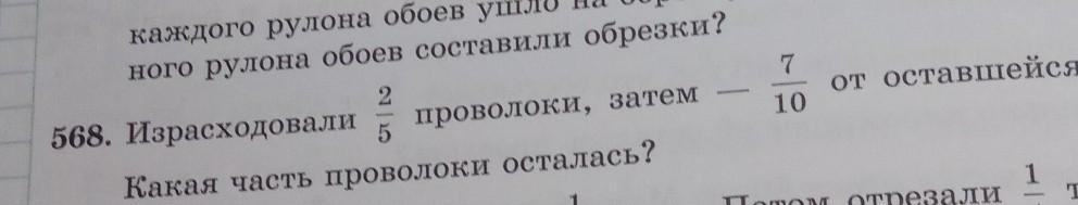 затем от этих 3/5 израсходовали 7/10 это будет 3/5 * 7/10 = 21/50 (частей)