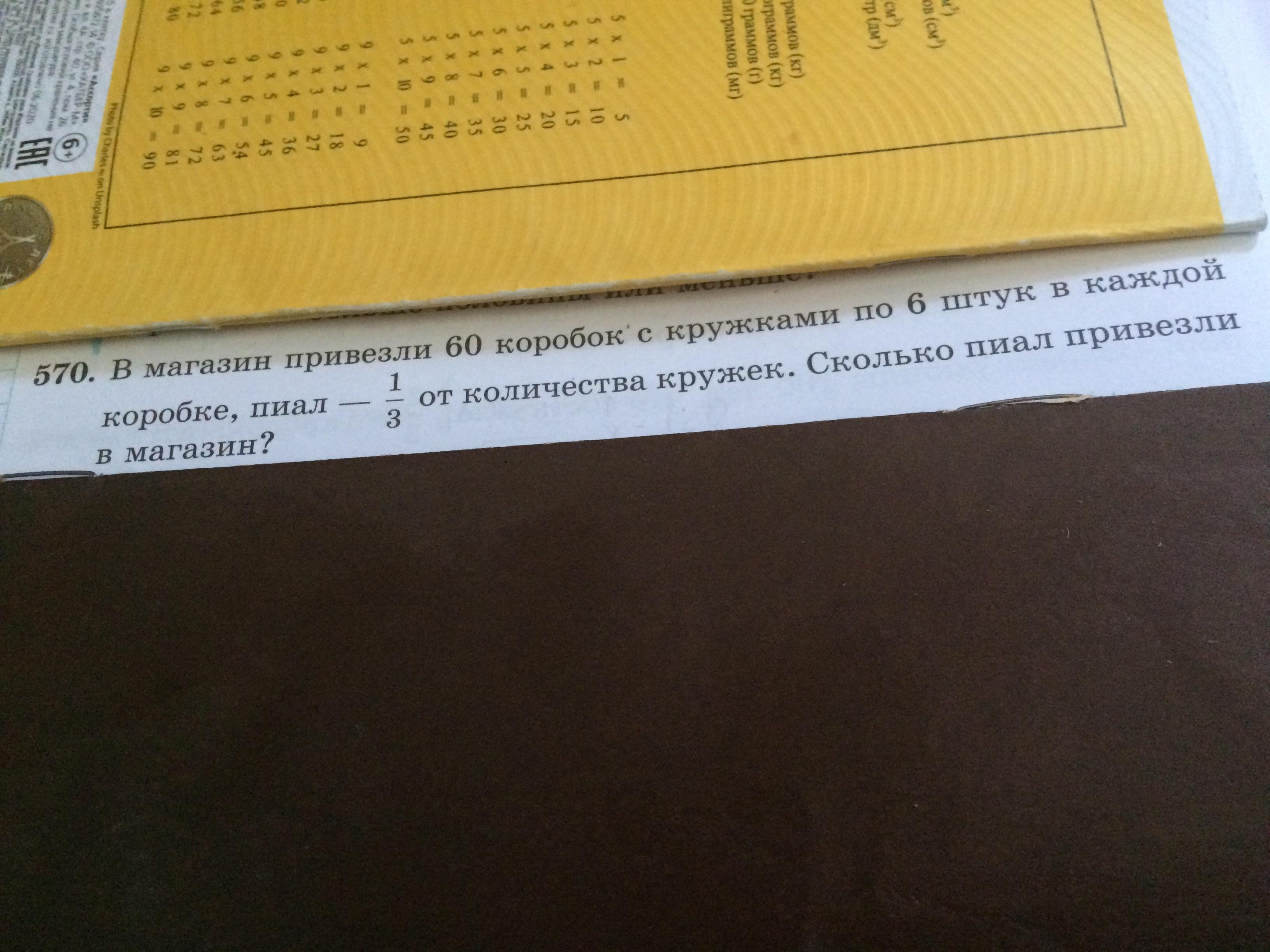 В магазин перевезли 60 коробок с кружками по 6 штук в каждой коробке, пиал-1/3 от количества кружек, сколько пиал привезли в магазин?