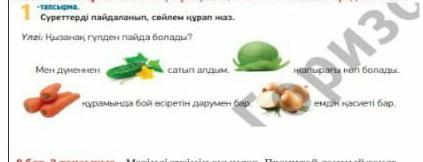 Мен дүкеннен қияр сатып алдым. Қырыққабаттың жапырағы көп болады.сәбіздің құрамында бой өсіретін дәрумен бар .Пияздың емдік қасиеті бар.