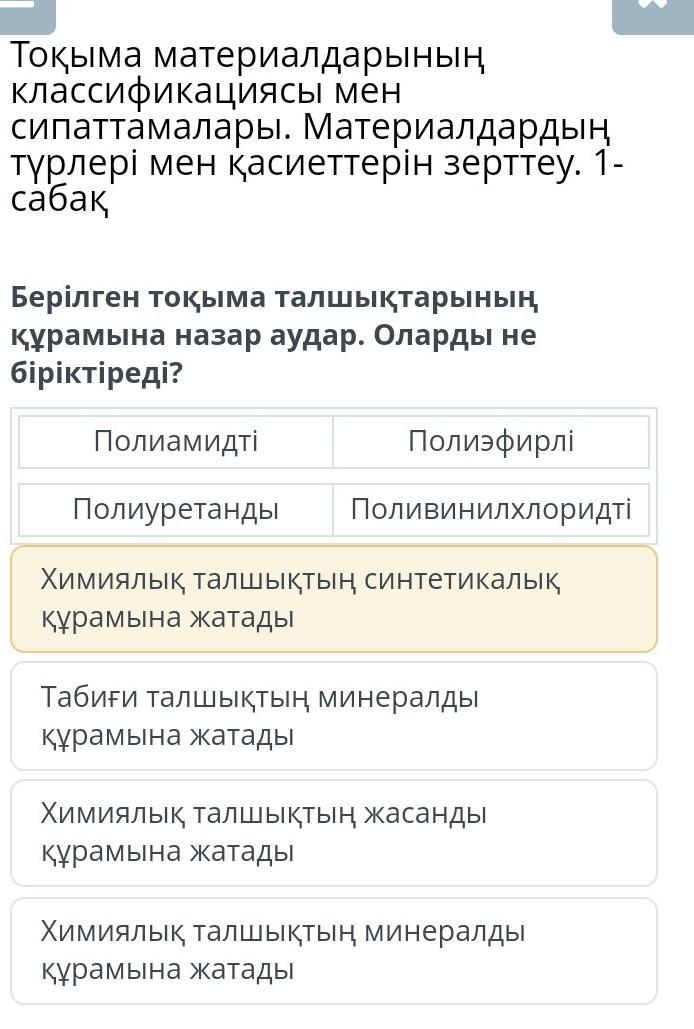 Берілген тоқыма талшықтарының құрамына назар аудар. Оларды не біріктіреді? Мой правильный?