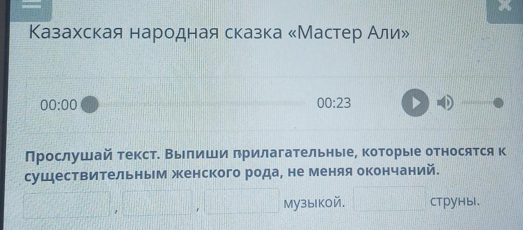 наутро слуги были разбужены нежной грустной и жалобной музыкой они вскочили и увидели старого пастуха Али сидел поджав ноги и держал в руке Невиданный ими прежде музыкальный инструмент тонкие струны были натянуты на нём Али перебирал их старческими пальцами инструмент был в его руках как живой.