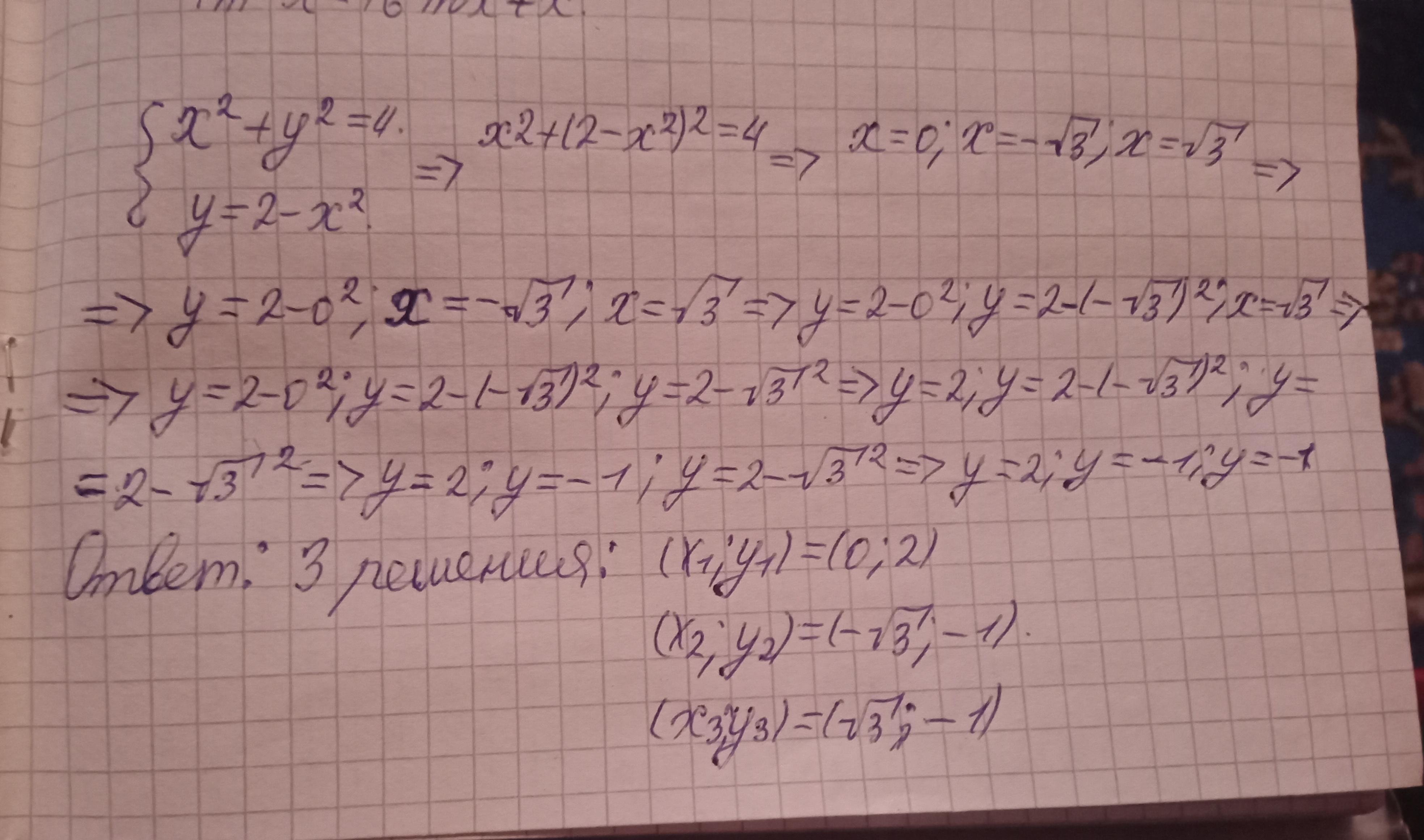 На графике я так же красным цветом отметил точки этой системы, ответ:3 решения