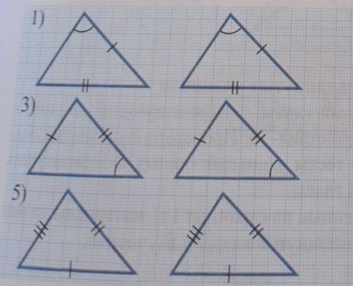 Какие из изображенных ниже пар треугольников равны между собой По какому признаку.пжжжжж