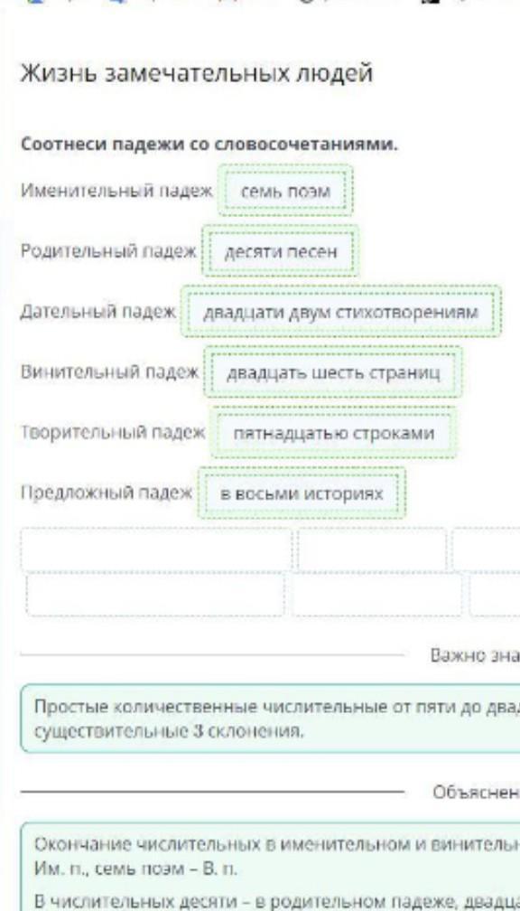 Соотнеси падежи со словосочетаниями.