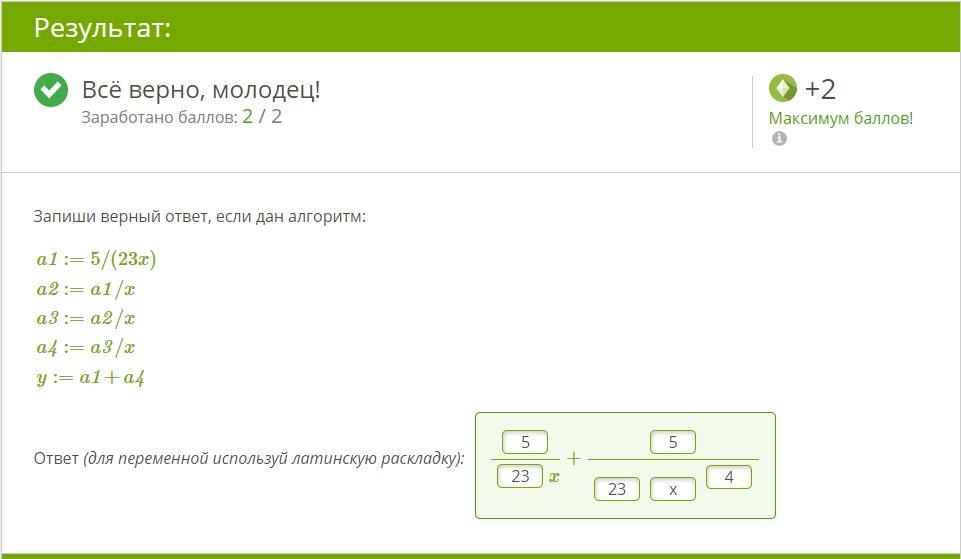 Запиши верный ответ, если дан алгоритм: