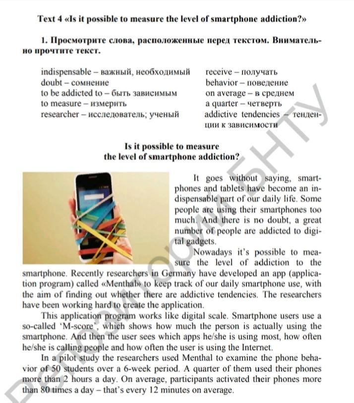 Само собой разумеется, что смартфоны и планшеты стали неотъемлемой частью нашей повседневной жизни. Некоторые люди слишком часто используют свои смартфоны. И нет никаких сомнений, что огромное количество людей пристрастилось к цифровым гаджетам. В настоящее время можно измерить уровень зависимости от смартфона, недавно исследователи в Германии разработали приложение (прикладную программу) под названием «ментал», чтобы отслеживать наше ежедневное использование смартфона с целью выяснить, есть ли аддиктивные тенденции. Исследователи упорно трудились над созданием приложения. Эта прикладная программа работает как цифровая шкала. А затем пользователь видит, какие приложения он использует чаще всего, как часто он звонит людям и как часто пользователь пользуется интернетом. В пилотном исследовании исследователи использовали ментал для изучения поведения телефона 50 студентов в течение 6-недельного периода. Четверть из них пользовались своими телефонами более 2 часов в день. В среднем участники активировали свои телефоны более 80 раз в день - в среднем каждые 12 минут.