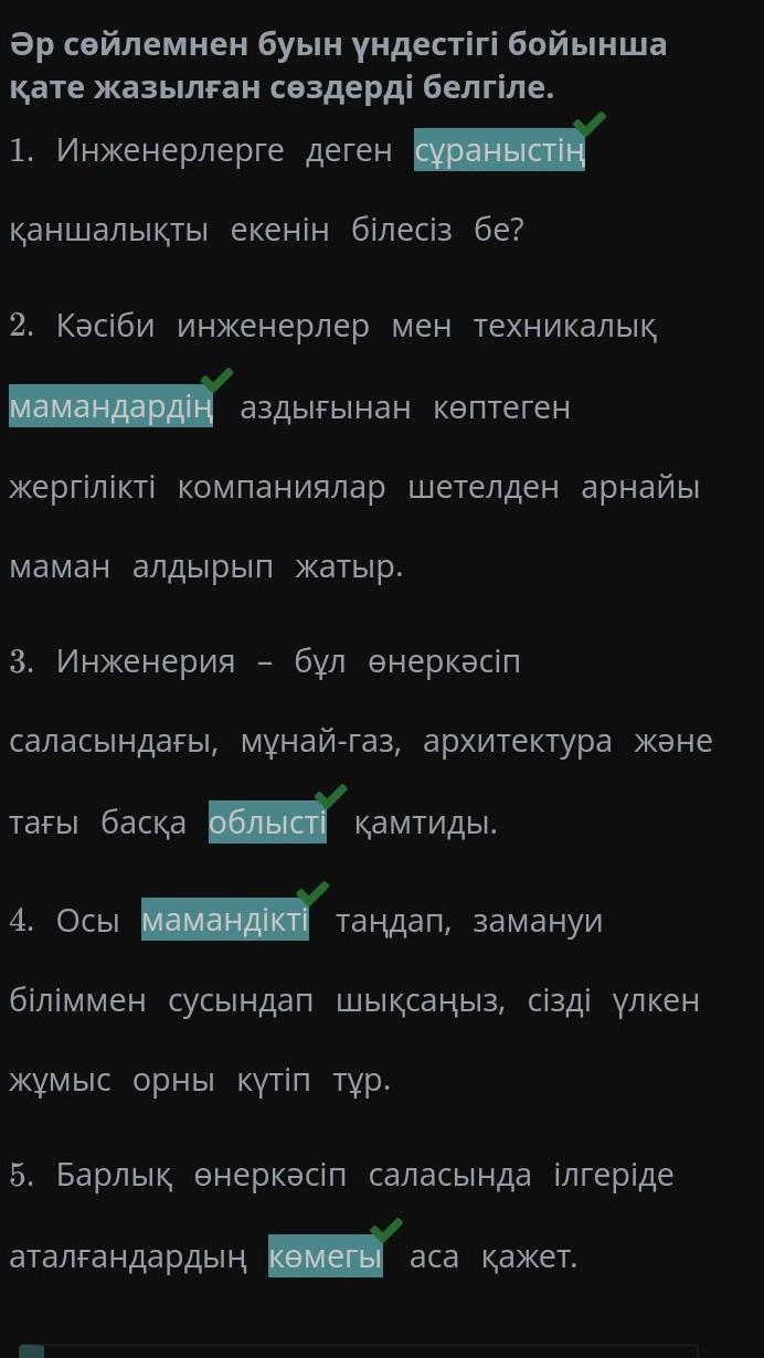 Әр сөйлемнен буын үндестігі бойынша қате жазылған сөздерді белгіле.