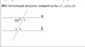 Прямые a и b параллельны, следовательно накрест лежащие углы 1 и 2 равны, то есть угол 2 = 110°. Аналогично с необозначенным углом и углом 3. Угол 3 = 70°