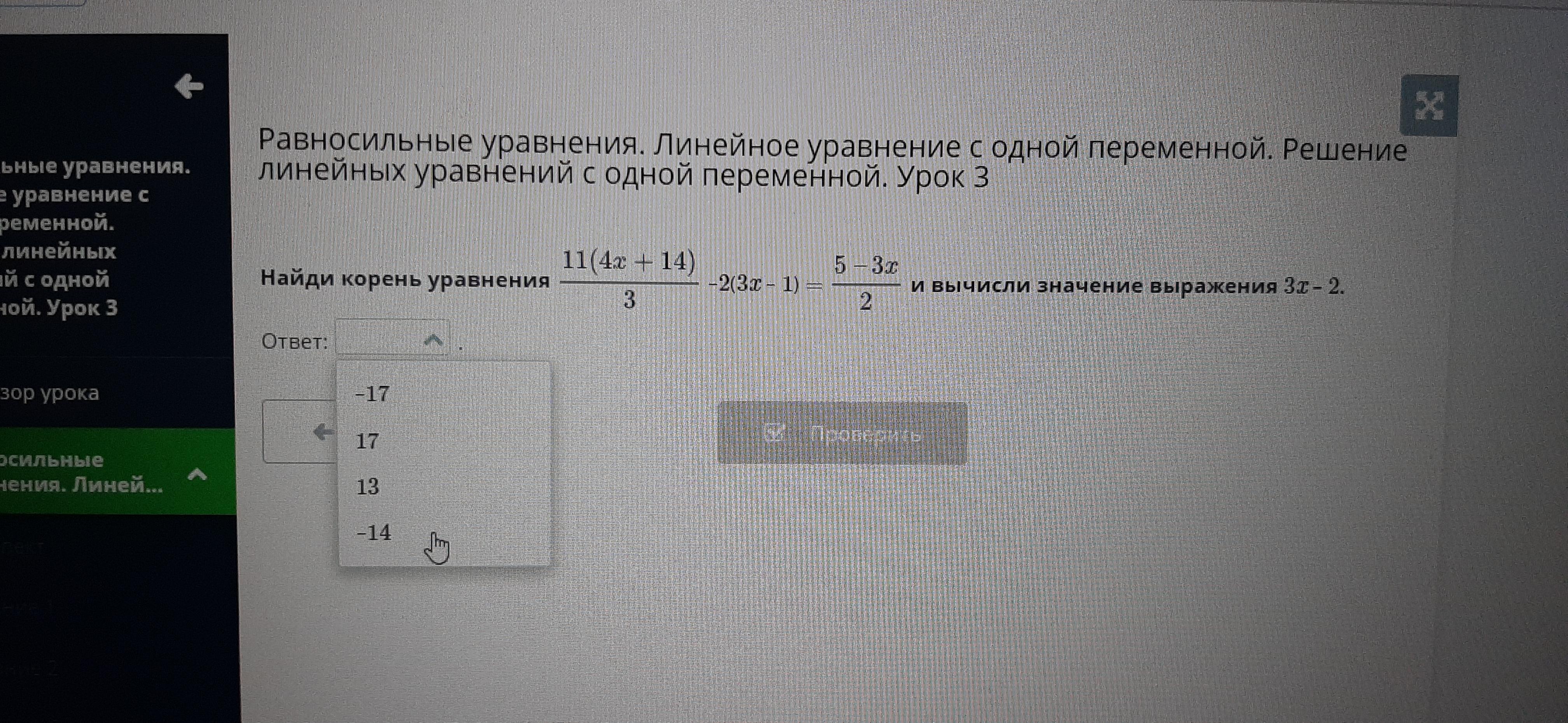 1) (11*(4х + 14))/3 - 2*(3х - 1) = (5 - 3х)/2