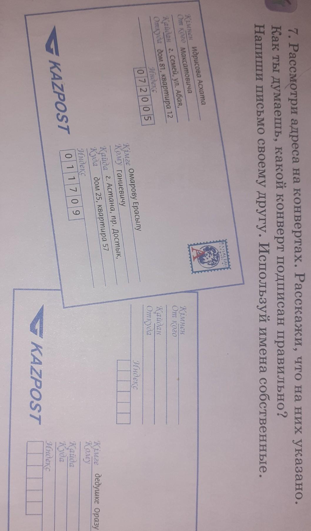 7. Рассмотри адреса на конвертах. Расскажи, что на них указано.