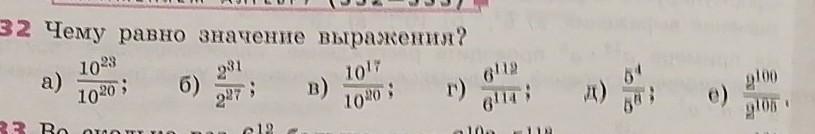А) 10²³/10²⁰=(метод сокращения)23 степень зачеркивается с нижним значением= 10³=1000