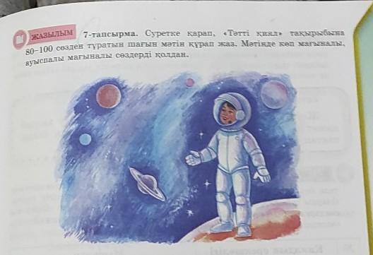 7-тапсырма Суретке қарап, "Тәтті қиял" тақырыбына 80-100 сөзден тұратын мәтін құрап жаз. Мәтінде көп мағыналы ауыспалы мағыналы сөздерді қолдан.