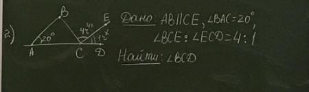 угол ECD=20, угол BCE=80, угол BCD=80+20=100