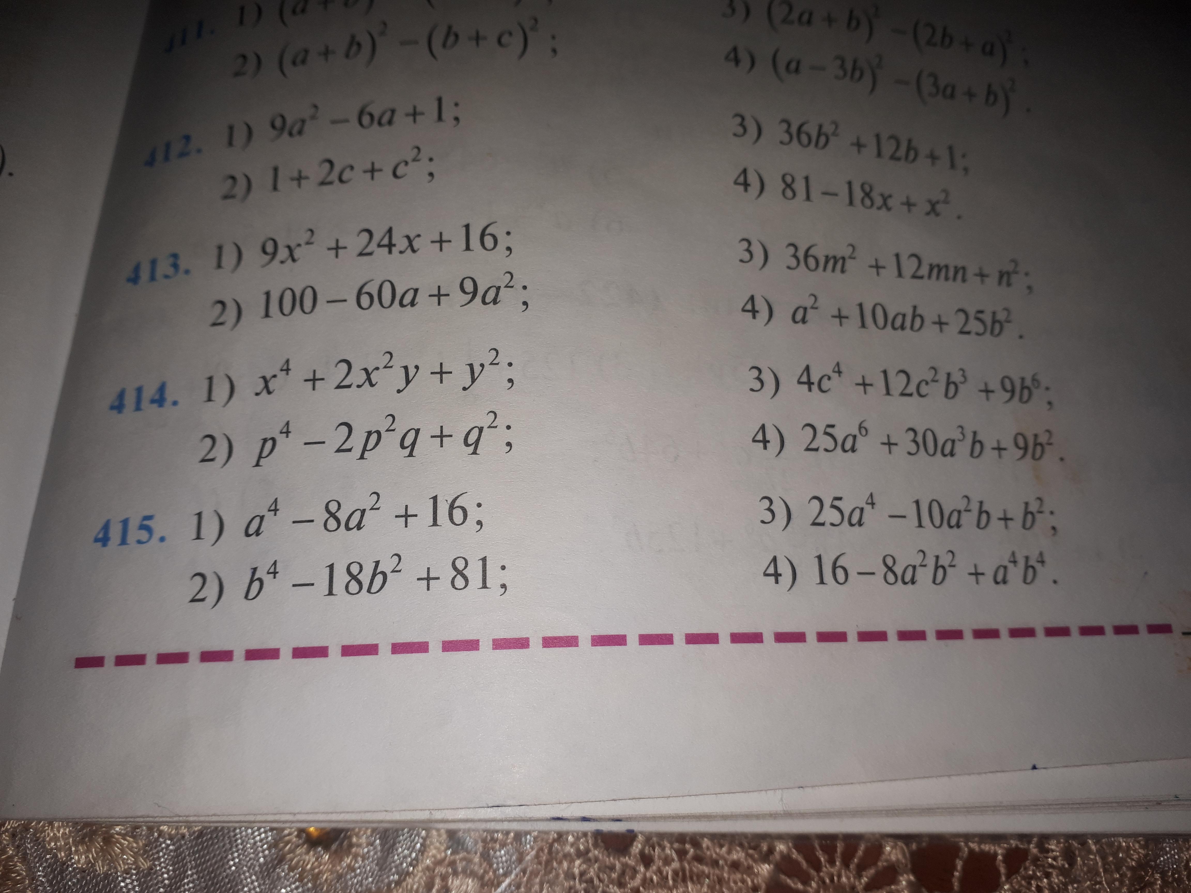 РеРебята омогите пожалуйста алгебра разложить на множители пожалуйста 414 и415 номера пожалуйста
