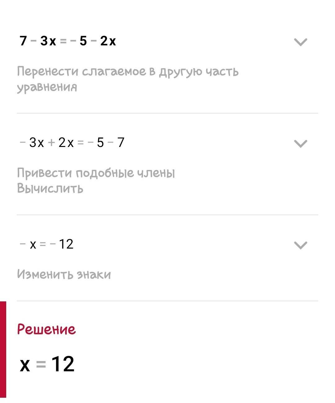 Какое из чисел является корнем уравнения 7-3x=-5-2x
