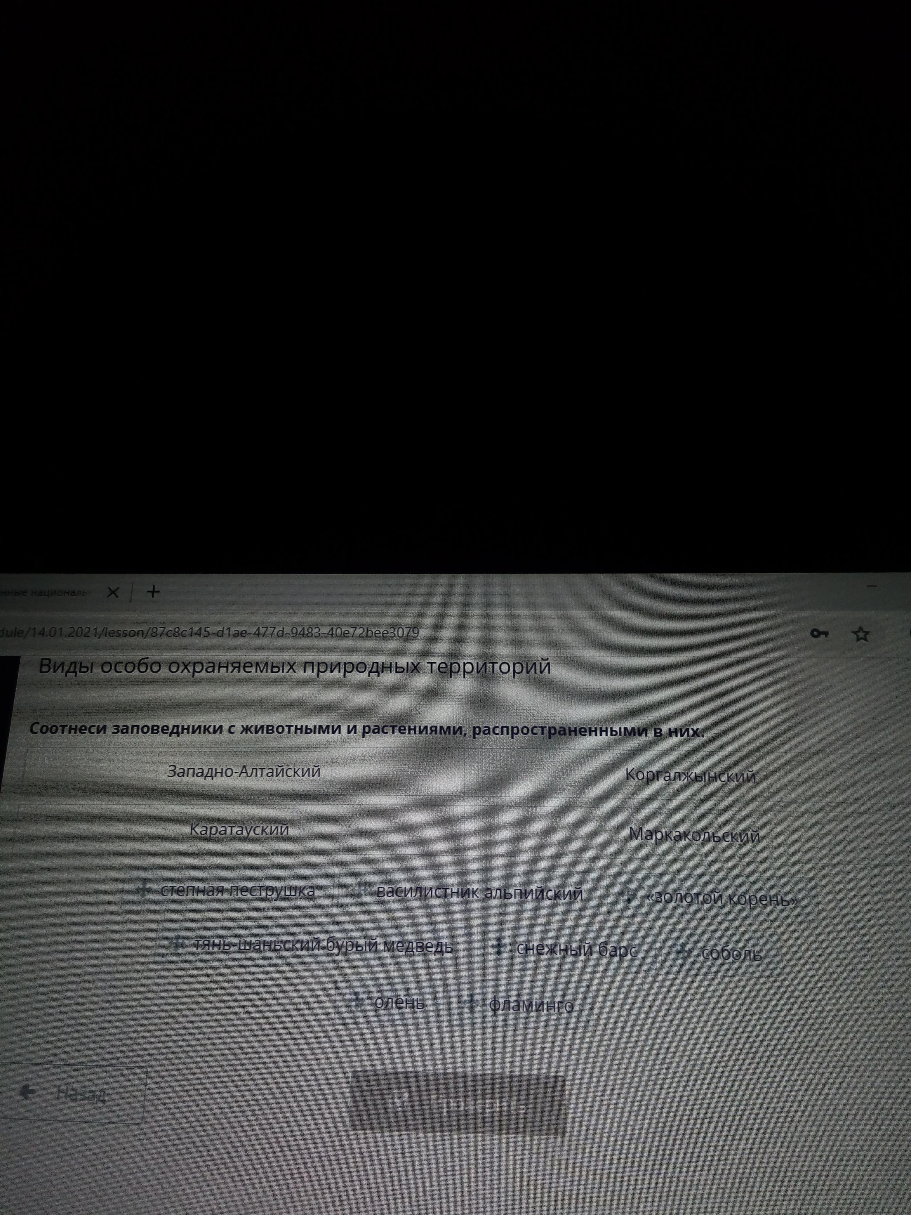 Соотнеси заповедники с животными и растениями, распространёнными в них.