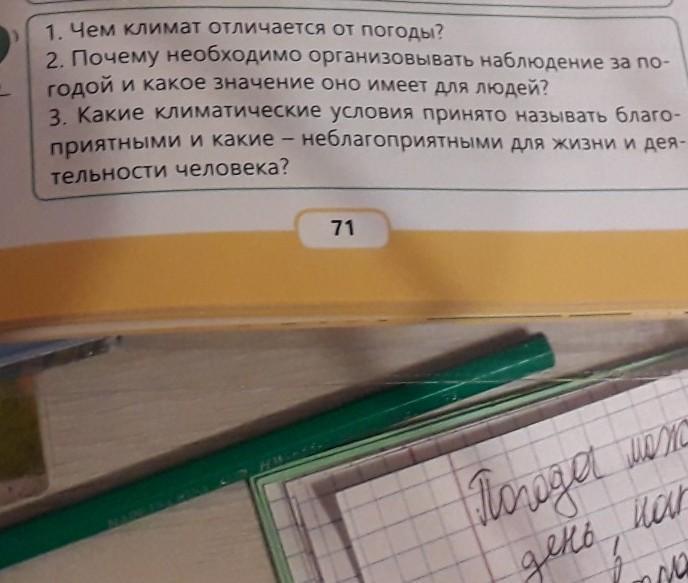 1-Многолетний режим погоды называют климатом. Климат, так же как и погода, включает важнейшие характеристики состояния атмосферы: температуру, влажность, облачность, осадки, ветры. Погода – единовременное состояние природы, а климат – постоянное для данной местности.