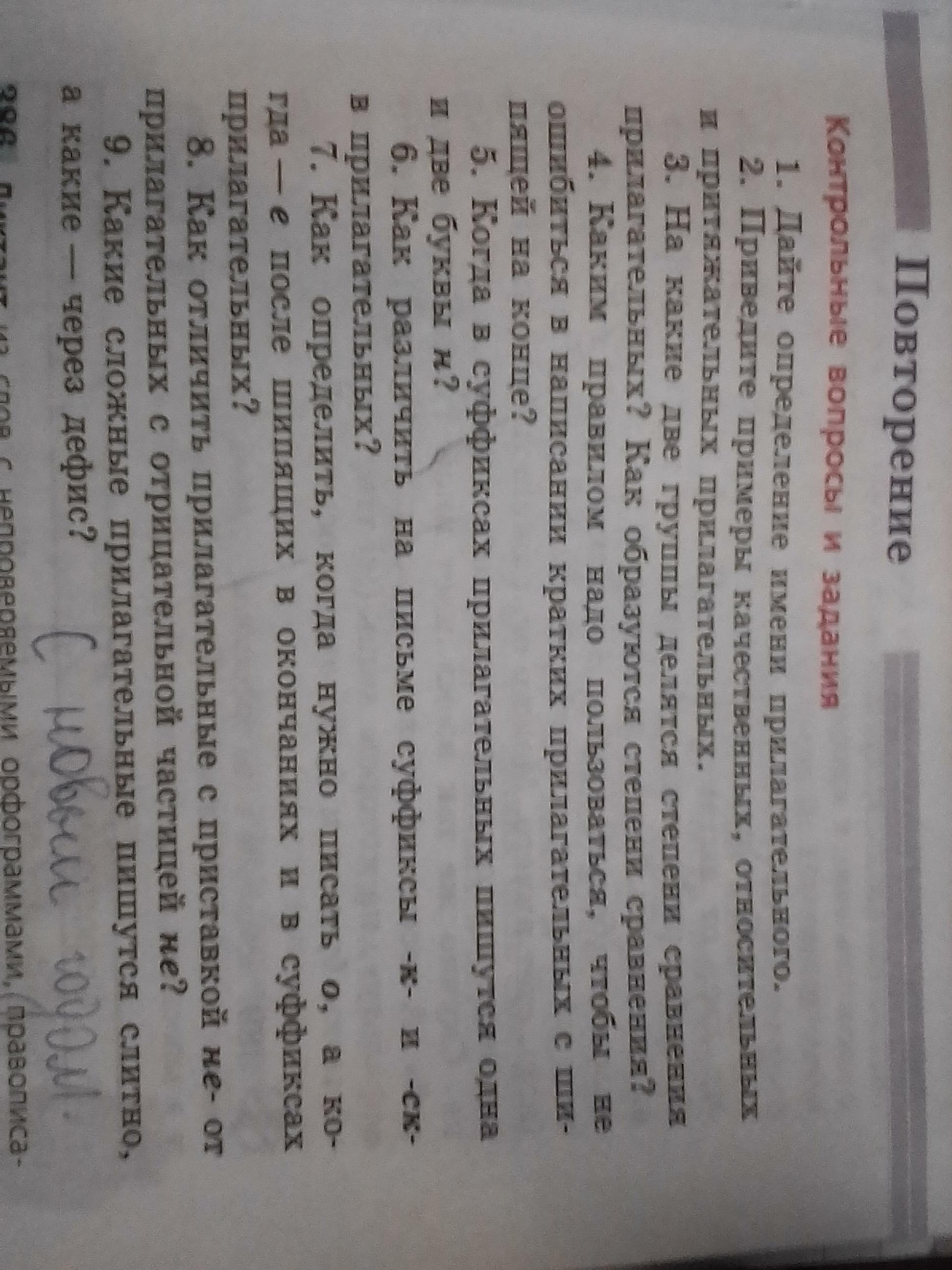 Объяснение:1)Имя прилагательное – самостоятельная часть речи, которая обозначает признак предмета и отвечает на вопросы какой? чей?2)качественные-красивый,яркий,длинный,относительные-спортивный,деревянный,притяжательные-мамин,лисий 3)сравнительная и превосходная,Разберем сначала сравнительную степень. Простой способ ее образования – с помощью суффиксов -ее, -ей, -е, -ше. Примеры: холоднее, быстрей, звонче, больше. Сложный – с помощью слов «более» и «менее»: более надежный, менее надежный. Супплетивный: плохой – хуже, хороший – лучше. Супплетивный встречается редко, у большинства прилагательных его нет. Например, у красивого, бедного, яркого и многих других прилагательных отсутствуют супплетивные формы.Теперь разберем превосходную степень. Простой способ – с помощью суффиксов -ейш-, -айш- и приставки наи-: храбрый – храбрейший, наихрабрейший, великий – величайший (варианта с наи- нет).Сложный – с помощью слов наиболее, наименее, самый, всех: наиболее мрачный, наименее мрачный, самый мрачный, всех мрачнее.4)у кратких прил на конце после шипящих ь не пишется :хорош,горяч5)Если имя прилагательное образовано от существительного с помощью таких суффиксов, как -ан-, -ян- и -ин-, то оно пишется с одной н, например, в слове глиняный. Из этого грамматического правила есть три слова-исключения: оловянный, деревянный, стеклянный. Если же в образовании прилагательного участвовали такие суффиксы, как -онн- и -енн-, то писать нужно удвоенную н, как в слове родственные.6)Суффикс -ск- пишется в относительных прилагательных, которые образованы от существительных с другими согласными в основах, например: французский (француз), флотский (флот), казахский (казах), деревенский (деревня). Перед суффиксом -ск- буква ь пишется только после л (генеральский, сельский), а также прилагательных, образованных от названий месяцев на -нь и -рь (июньский, сентябрьский и т. д., кроме январский).7)Под ударением всегда пишется О (меньшой, чужой, свежо); В безударных окончаниях – всегда употребляется Е 8)Частица пишется с прилагательными раздельно, приставка - слитно. Если в предложении прилагательное противопоставляется другому и делается это с помощью союза А или при нем есть слова далеко, вовсе, ничуть , нисколько, никогда, то перед нами раздельное написание и НЕ - частица. 9)Если сложные прилагательные образованы путем сочетания основ слов, одно из которых зависит от другого (нельзя вставить союз И), то они пишутся слитно. : Железная дорога – железнодорожный (нельзя сказать жезный и дорожный); ремонт вагонов – вагоноремонтный (нельзя сказать вагонный и ремонтный). ... Сложные прилагательные пишутся через дефис, если образованы от сущ., в которых был дефис: юго-запад – юго-западный. -образованы от сочетания основ независимых друг от друга слов (можно вставить союз И): учебно-производственная мастерская (учебная и производственная); садово-огородный инвентарь (садовый и огородный).