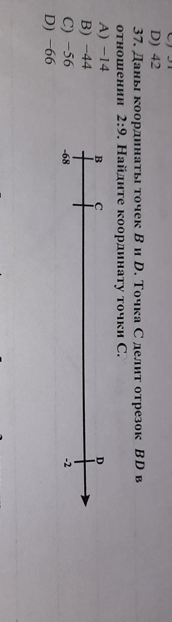 37. Даны координаты точек Ви D. Точка С делит отрезок BD в