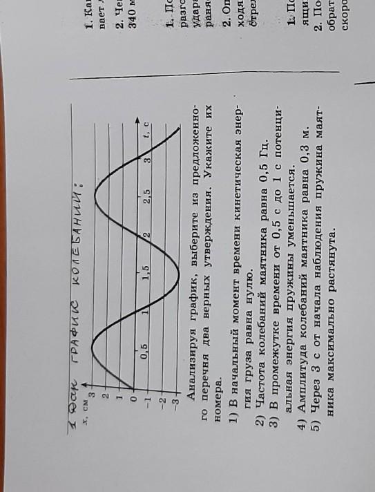 Потенциальная энергия пружины максимальна в крайнем положении маятника (когда скорость груза равна нулю). Крайнему положению на графике соответствует время 0,5 с. А положению равновесия - 1 с, когда пружина не сжата и не растянута, то есть когда её потенциальная энергия равна нулю (Еп = 0). Значит, в промежутке (0,5 - 1) потенциальная энергия пружины уменьшалась.