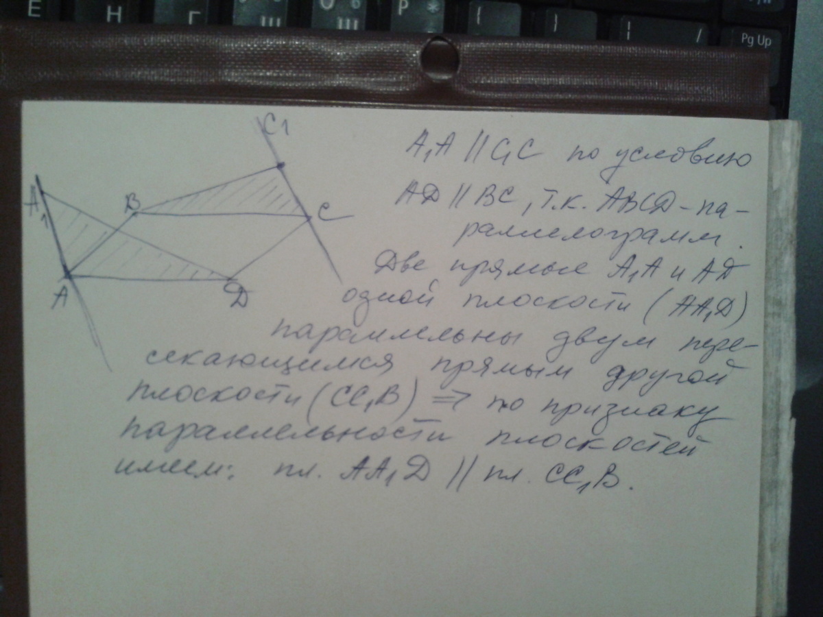 Через вершины А и С параллелограмма АВСD проведены параллельные прямые А1А и С1С, не лежащие в плоскости параллелограмма.