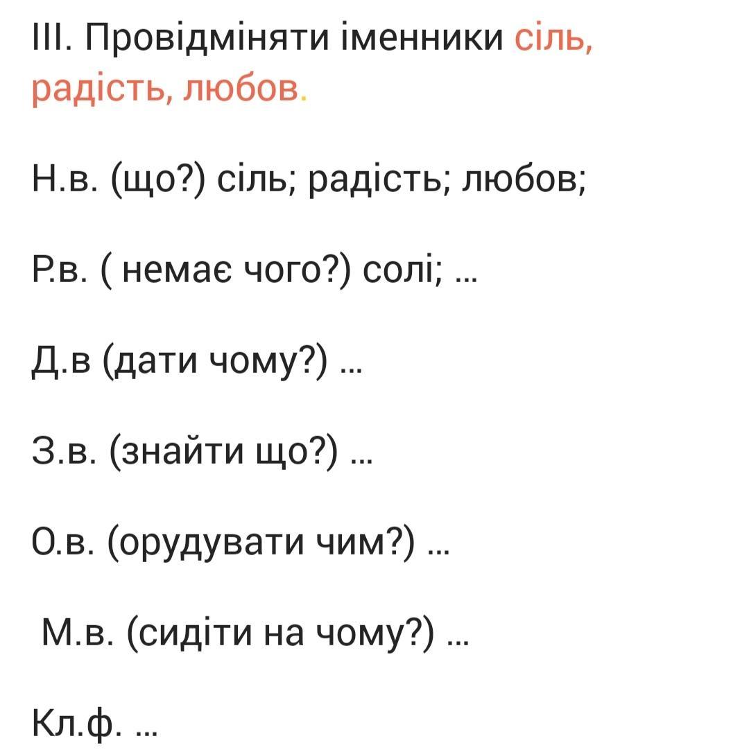 Сіль, солі, солі, сіль, соллю, у солі, соле.