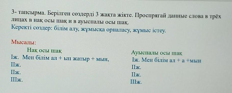 l-жақ-мен білім аламын,мен жұмысқа орналастым,мен жұмыс істедім.