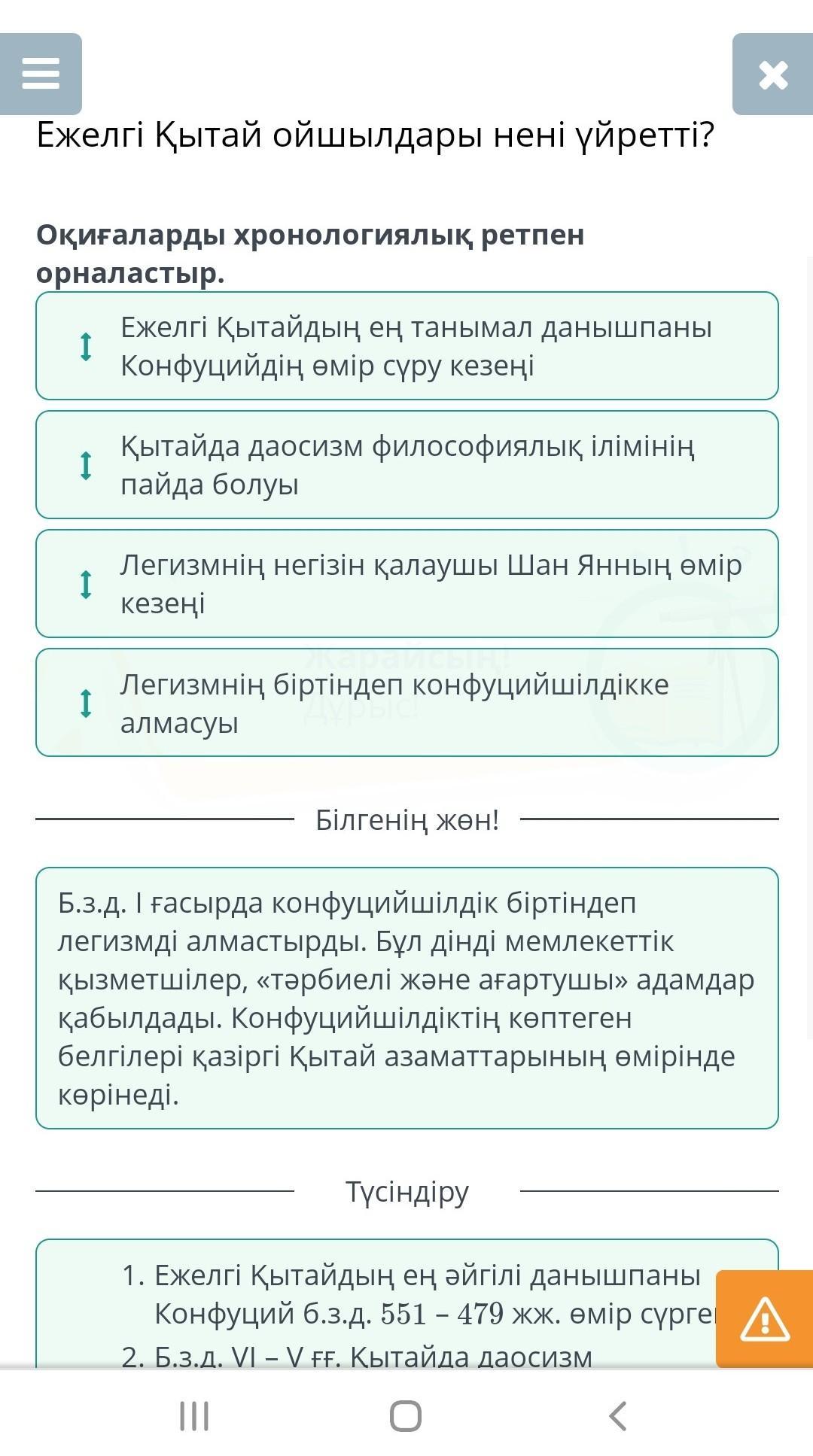 Оқиғаларды хронологиялық ретпен орналастыр.
