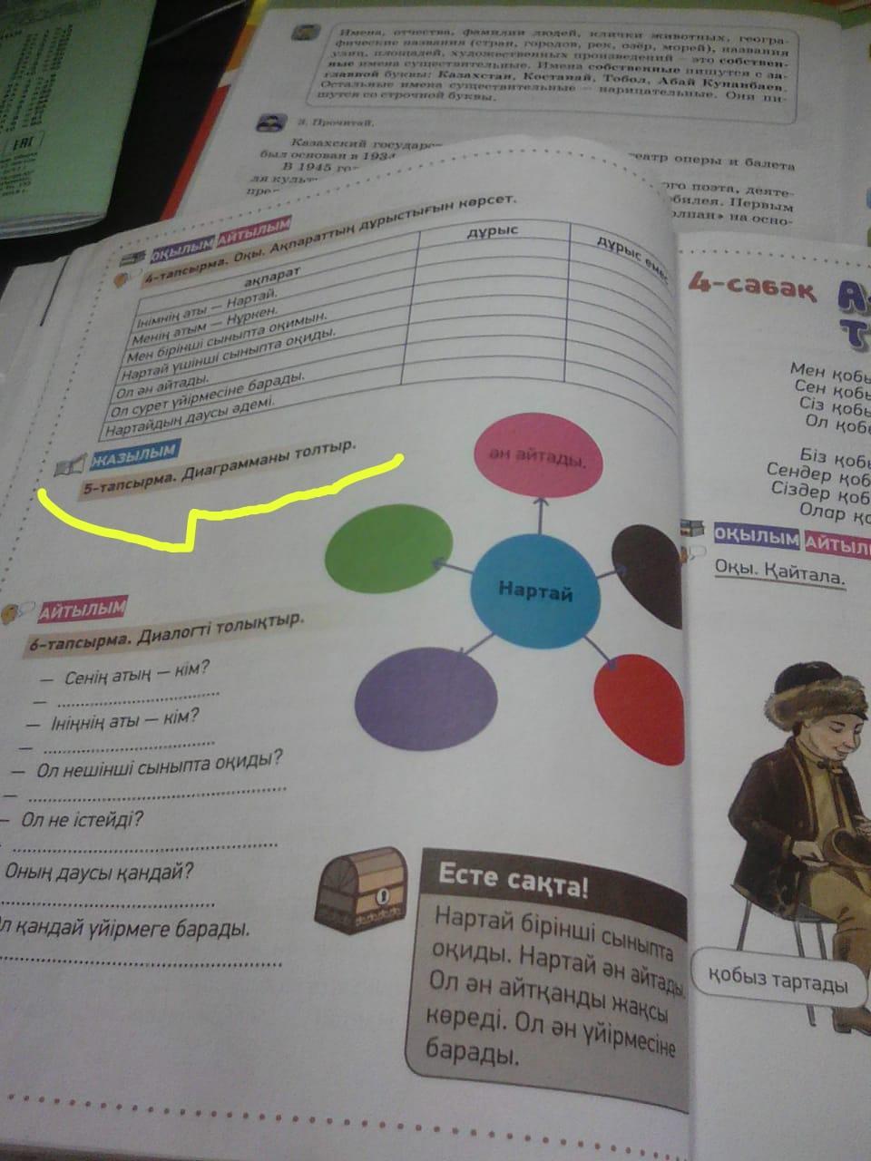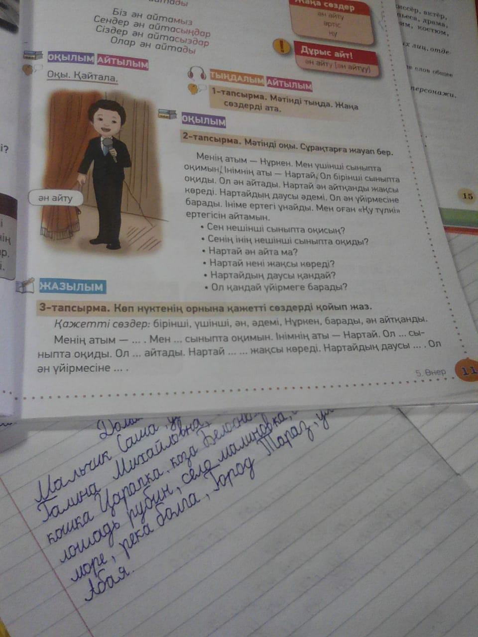 Нартай:ән айтады,ол ән айтканды жаксы көреді,ол ән үйірмес¡не барады,даусы әдемі.