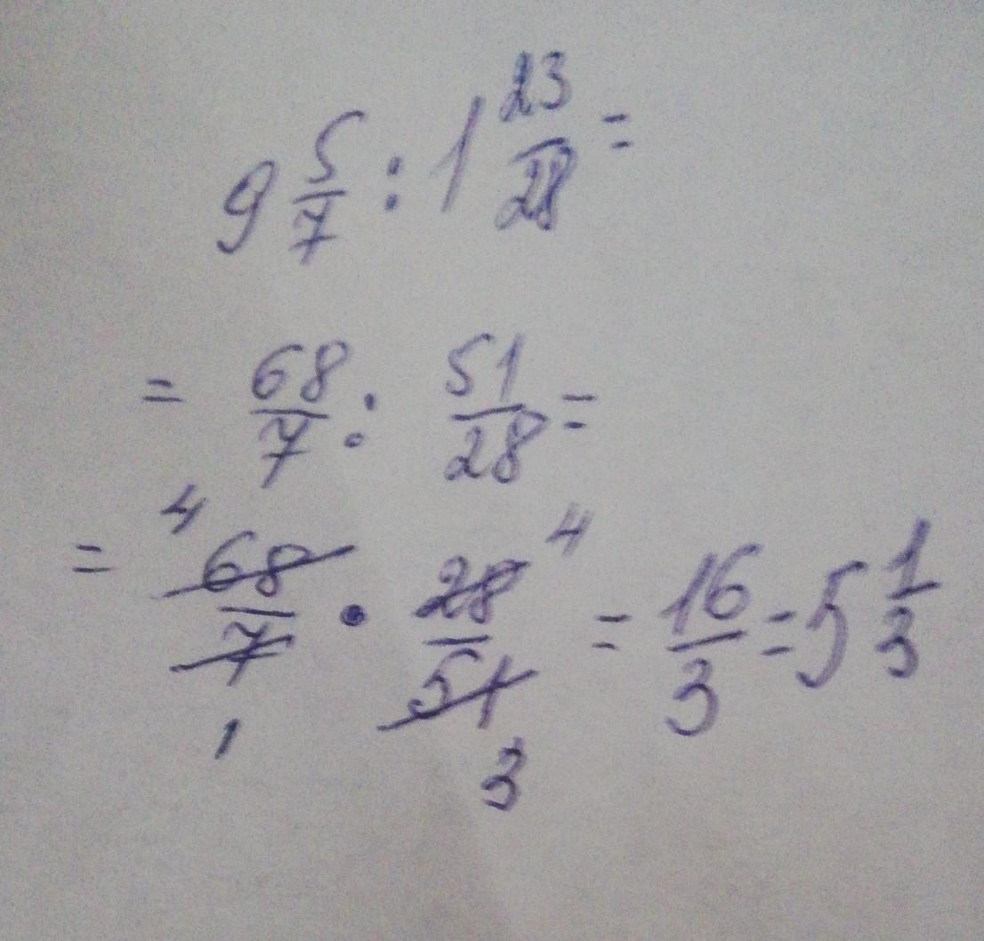 Решите пример по правилу : 9 целых 5/7:1целая 23/28 =?
