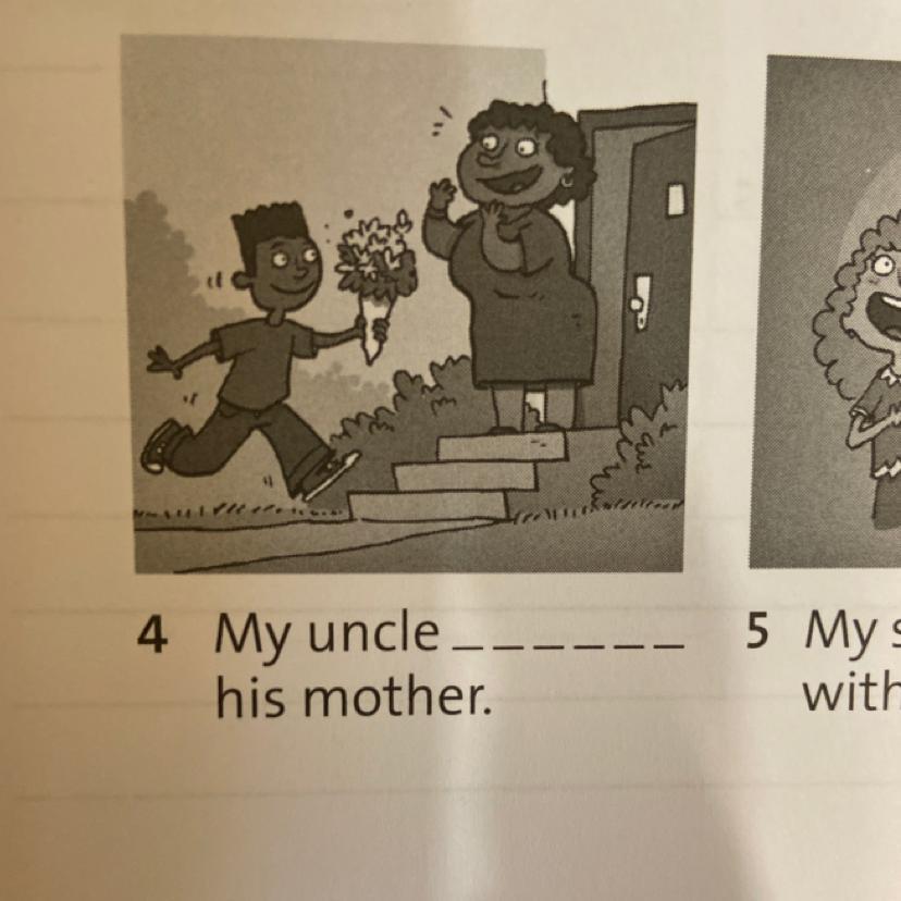 Перевод : Мой дядя ..... его маме. То есть можешь написать так : My uncle gives flowers to his mom, перевод : Мой дяда дарит цветы его маме