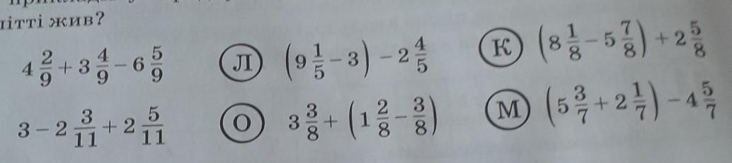 Ответ:7 целых 1/9 (это слева сверху) слева снизу: 1 целая 8/11;посередине сверху 3 целых 2/5 снизу:4 целых 2/8; справа сверху 4 7/8 снизу:2 целых 6/7 если не правильно то сори, я старался