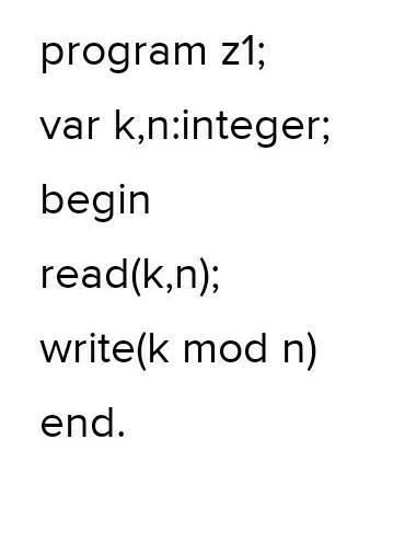 N школьников делят К груш поровну, неделяющийся остаток остается в корзинке. Напишите программу, которая определяет, сколько груш останется в корзине?