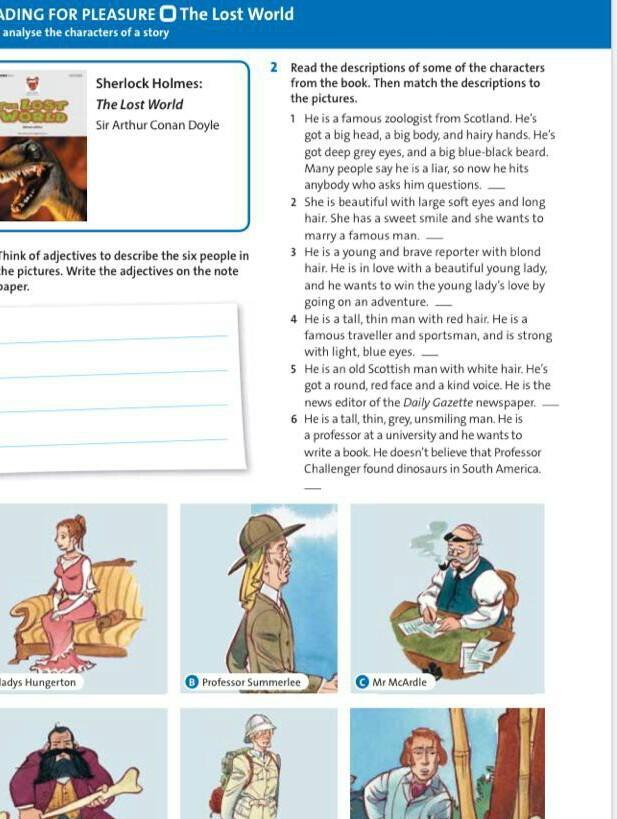 Read the descriptions of some of the characters from the book. Then match the descriptions to the pictures