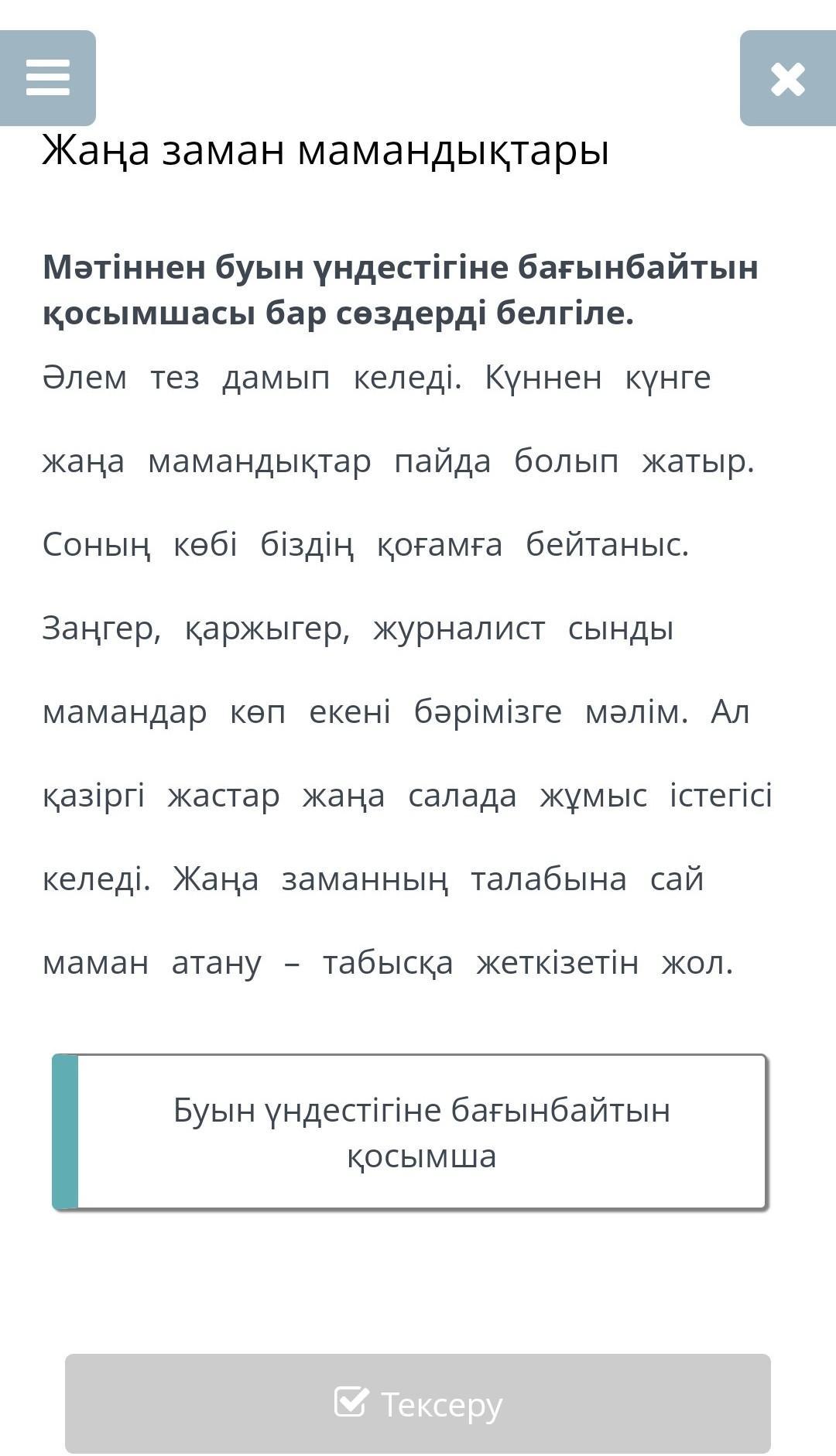 әр сөйлеммен буын үндестігіне бағынбайтын қосымшасы бар сөздерді белгіле