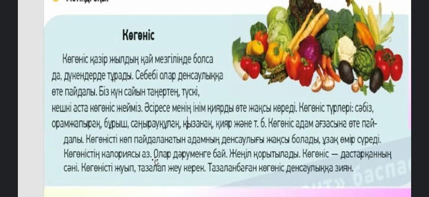 Көкөніс адамның денсаулығына өте пайдалы . Көкөністерде калл аз , сондықтан көкөністер арқылы диетаға отыруға болады . Оларда денені жақсартуға арналған дəрумендер бар.