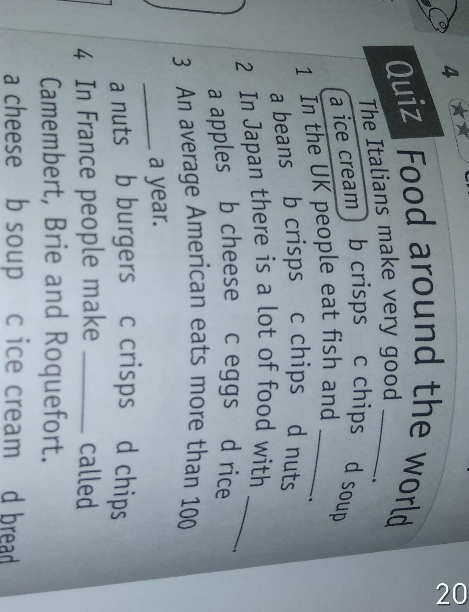 4 In France people make ... called Camembert, Brie and Roquefort.