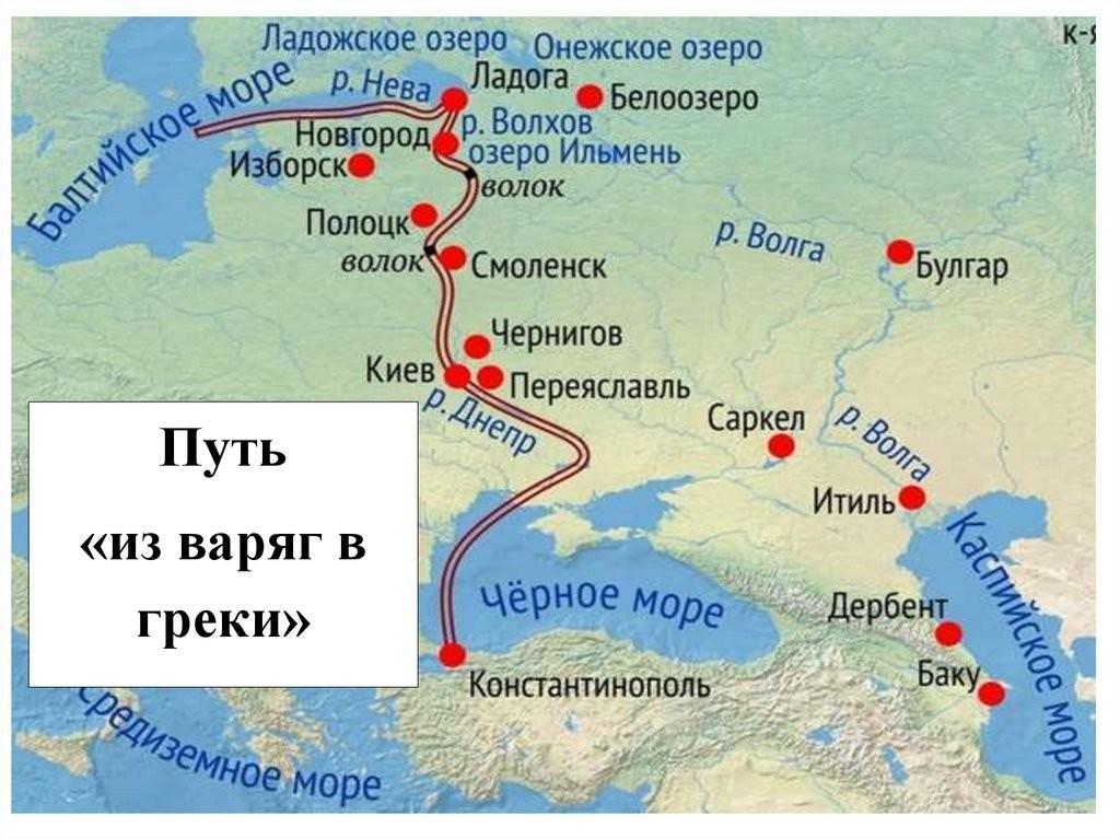 3 Выпишите города, через которые проходил путь "из варяг в греки".
